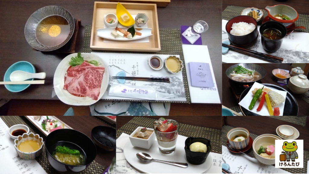 今回の日光訪問では、大谷川のほとりに建つ「日光千姫物語」を利用させていただきました。夕食は地元食材を生かした季節替わりの懐石料理に大満足。静かな露天風呂が一日の疲れを癒してくれます。