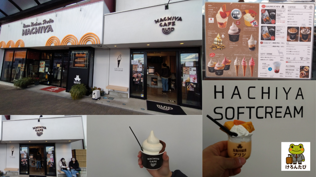 SL大樹に乗って鬼怒川温泉を訪れたなら、駅前の「はちやカフェ」がおすすめ。素材にこだわった手づくりバウムクーヘンのお店「バウムクーヘン工房はちや」のバウムを、新しい形のスイーツとして提供するお店です。バウムプリン、はちやバウムソフト、はちや風アフォガードなど、写真映えするスイーツを求める人で行列ができるほどの人気店となっています。